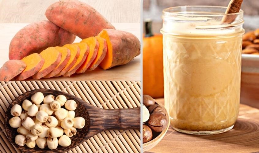 – Ngâm hạt sen 45′-60′ trước khi nấu, khoai lang gọt vỏ, cắt khoanh nhỏ, sau đó cho hạt sen cùng 1 lít nước nấu trước, đến khi sôi khoảng 15′ thì cho khoai lang vào nấu chung.