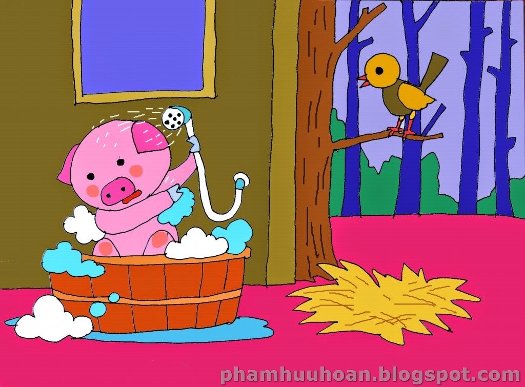 Lợn con vừa lười vừa bẩn, không thích tắm, suốt ngày chỉ nhắm mắt nằm. Hôm đó, lợn ta tỉnh giấc trong tiếng cười đùa huyên náo của các con vật khác. Hé mắt nhìn qua cửa sổ, lợn con thấy bạn bè đang chơi đùa thỏa thích. Lợn ta vội vàng chạy đến dưới gốc cây. Ai dè, các con vật thấy lợn con vội vàng bịt mũi chạy tản ra chỗ khác. Chúng vừa chạy vừa la toáng lên "Hôi, hôi, hôi quá". Chỉ trong nháy mắt tất cả các con vật biến mất tăm mất tích. Lợn con ngạc nhiên quá. "Sao vậy?". Một con chim tốt bụng sà qua bảo cho lợn con biết: "Lợn con ơi, lợn con ơi! Cậu bẩn quá, đi tắm đi, nhanh lên!". Lợn con vội chạy về nhà tắm gội. Nay lợn con sạch sẽ lắm rồi. Các bạn lại đồng ý chơi với nó rồi đấy!
