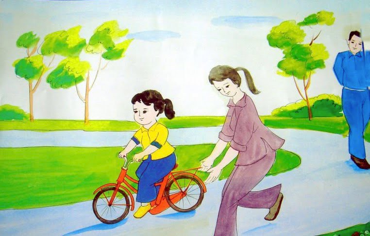 Bé tập đi xe đạp
