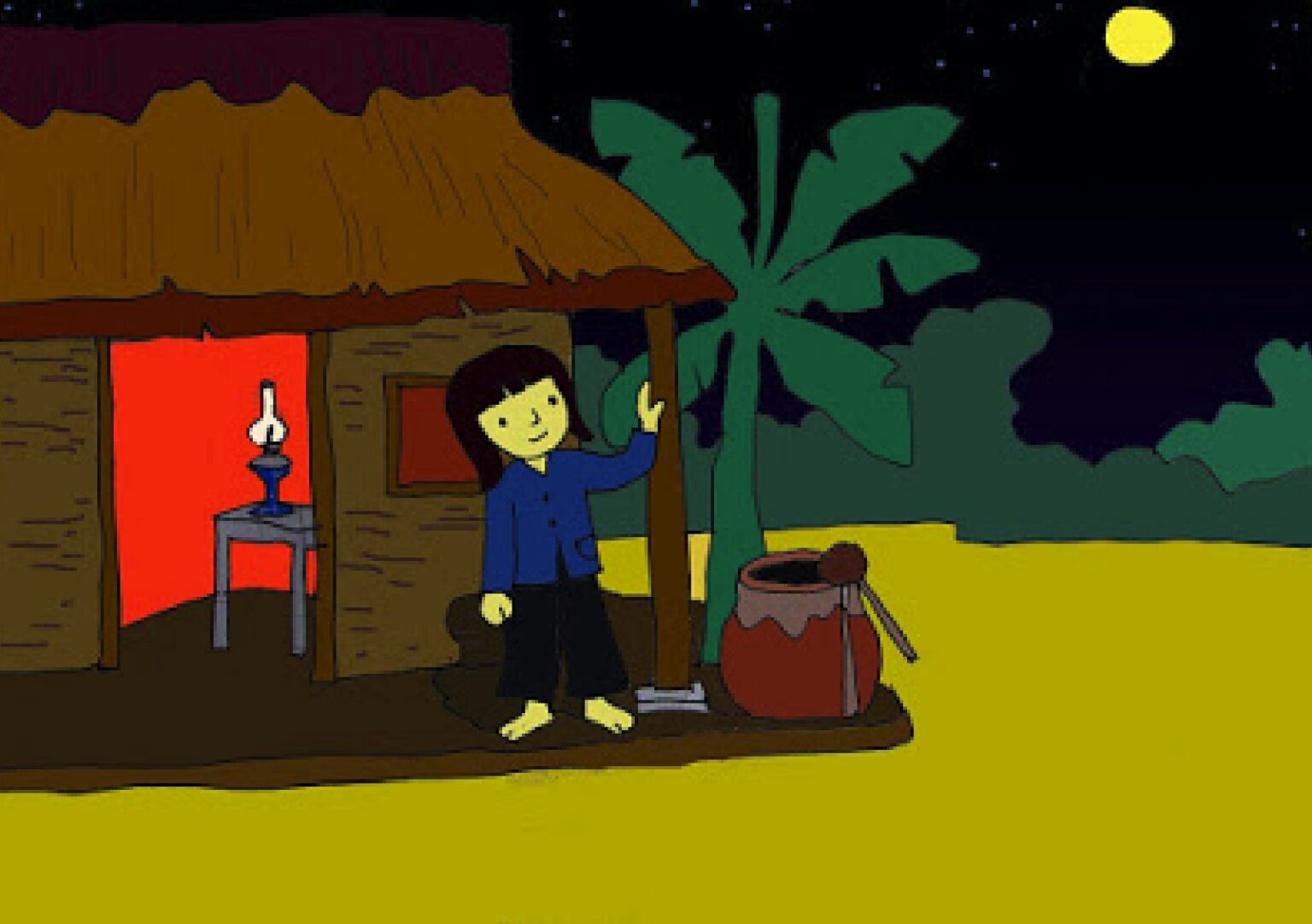 Trăng sáng sân nhà em