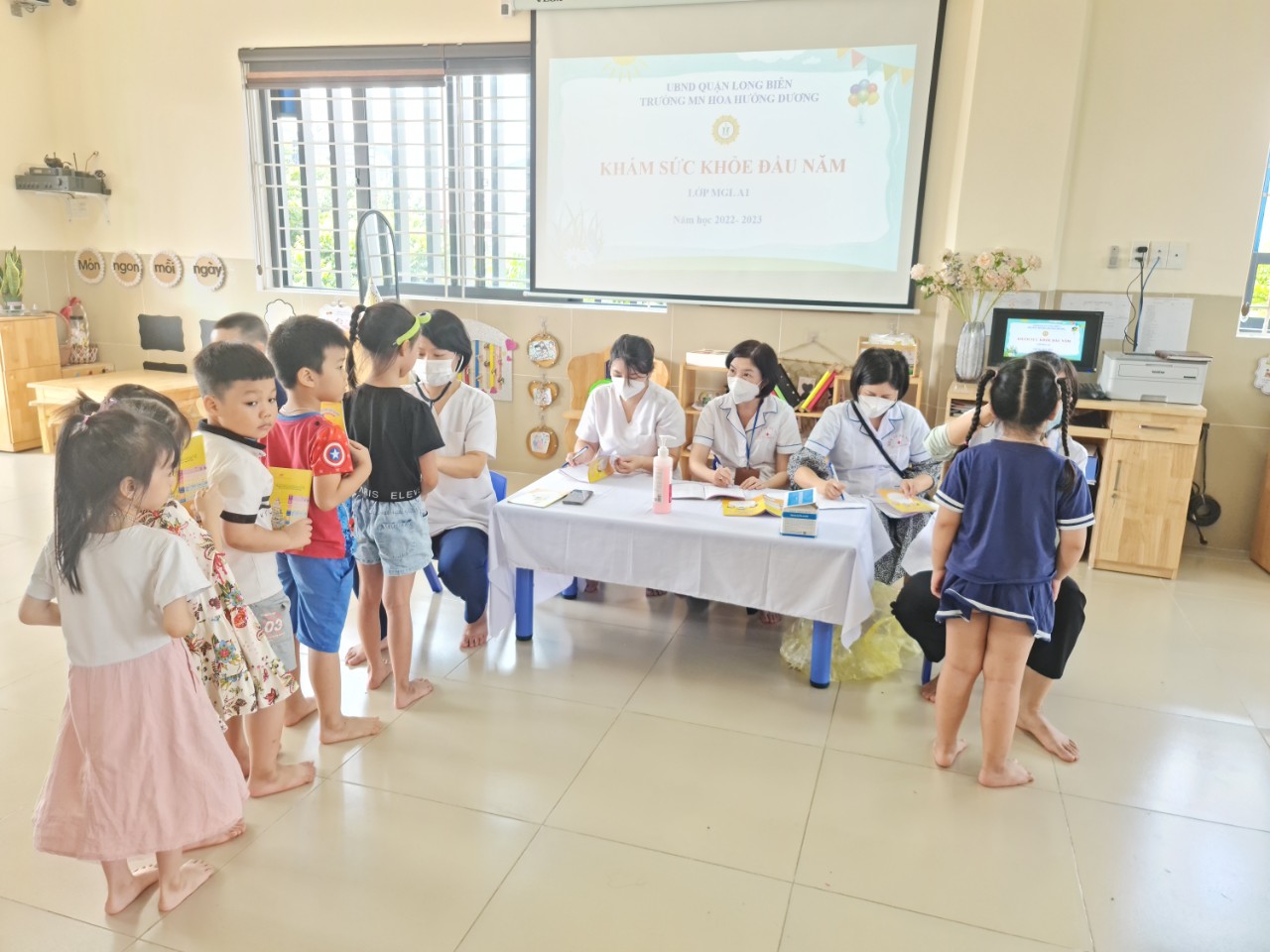 Ngày 06/10/2022, Trường MN Hoa Hướng Dương phối hợp với trạm y tế phường Việt Hưng tổ chức khám sức khỏe đầu năm cho trẻ