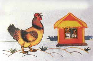 Ngày xưa có một ông cụ và một bà cụ . Họ có 1 con gà mái hoa mơ