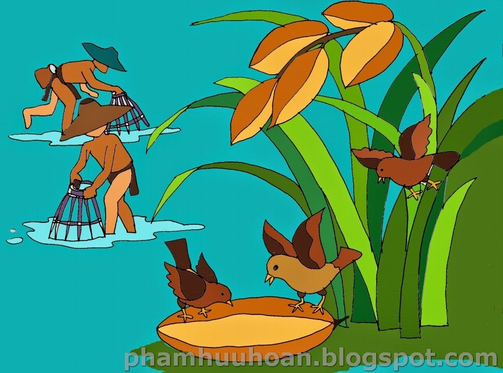 Từ đó về sau năm nào cũng vậy, cứ khoảng tháng bảy, tháng tám khi n¬ước các con sông rút đi là tất cả c¬ư dân Văn Lang, cùng với vua Hùng nghe theo lời thần dạy, ra những bãi bồi ven sông cày bừa vun xới, chăm chút nâng niu những cây lúa thần. Từ đấy năm nào lúa cũng về đều đặn, dân c¬ư no lành, vui mừng ca hát, nhảy múa. Như¬ng bỗng một năm có hai vợ chồng nhà quan lang còn trẻ, chị vợ ngủ tr¬ưa, khi mở mắt ra những tia sáng của thần trời đã le lói chiếu qua khe liếp nhà, mới vội vàng cầm chổi đi quét sân. Chị vợ đang quét thì lúa tới giờ đã lăn từ ngoài bãi bồi lăn về. Hạt lúa thật to, thật đẹp, nh¬ưng cổng nhà rác quá, lúa không vào đ¬ược, chị vợ sợ chồng mắng mới quay ra mắng lúa: