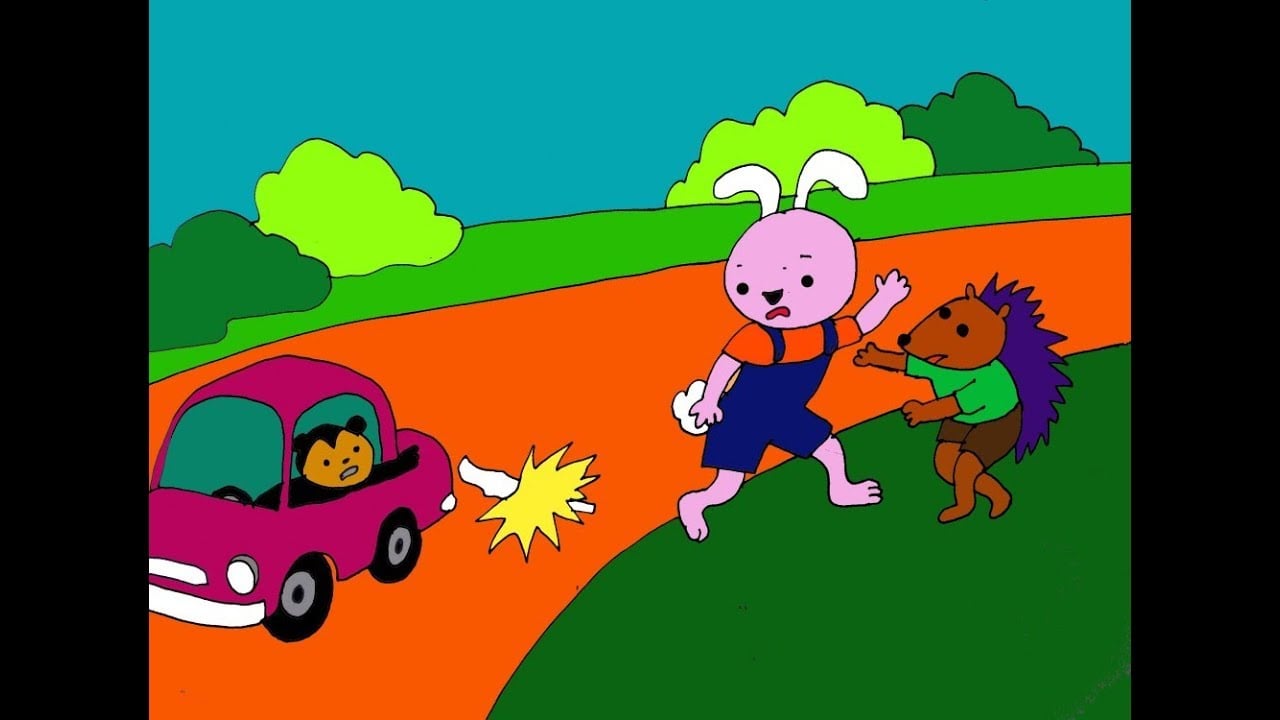 Nhím động viên Thỏ: “Từ nay chúng mình cùng phải cẩn thận hơn khi sang đường, phải nhìn sang trái, sang phải, không có xe đến gần mới được qua đường”. Thỏ bẽn lẽn: “Tớ đồng ý”.”