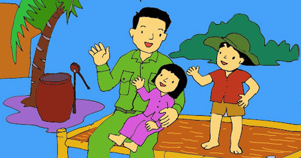 Từ hôm đó, mỗi lần vẽ tranh, bé Na đều vẽ hình chú bộ đội đứng trên đồi canh gác, bên dưới là những em bé đang tung tăng vui chơi.