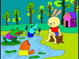 Ở phía trước nhà Thỏ nằm một cái hồ nước trong xanh. Buổi sáng, Thỏ thường sớm dậy, chạy quanh hồ và ngồi nghỉ trên ghế bên bờ hồ, trò chuyện vui vẻ với bạn bè Cá, Ếch, Tôm, Cua sống dưới nước. Tình bạn của họ thật sâu sắc.