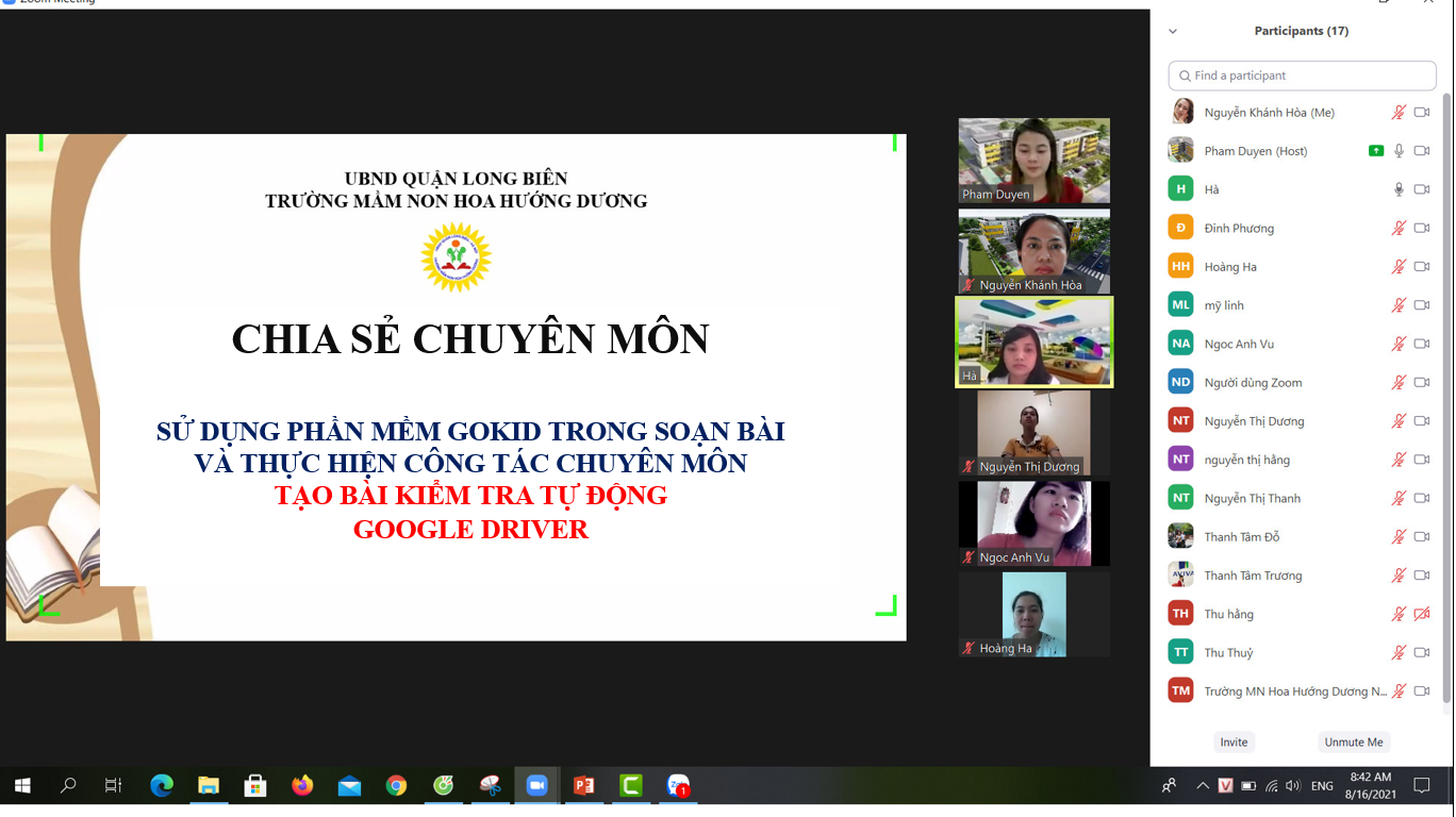 Tổ Chuyên môn trường Mầm non Hoa Hướng Dương tổ chức sinh hoạt chia sẻ chuyên môn trực tuyến trên phần mềm Zoom.