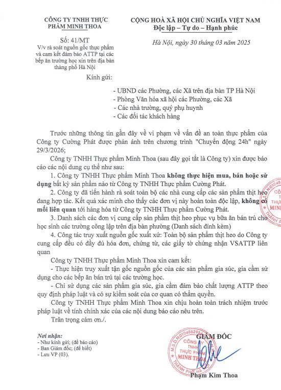 Việc công khai này giúp Quý phụ huynh chủ động theo dõi, giám sát và truy xuất nguồn gốc thực phẩm hằng ngày của con em mình.