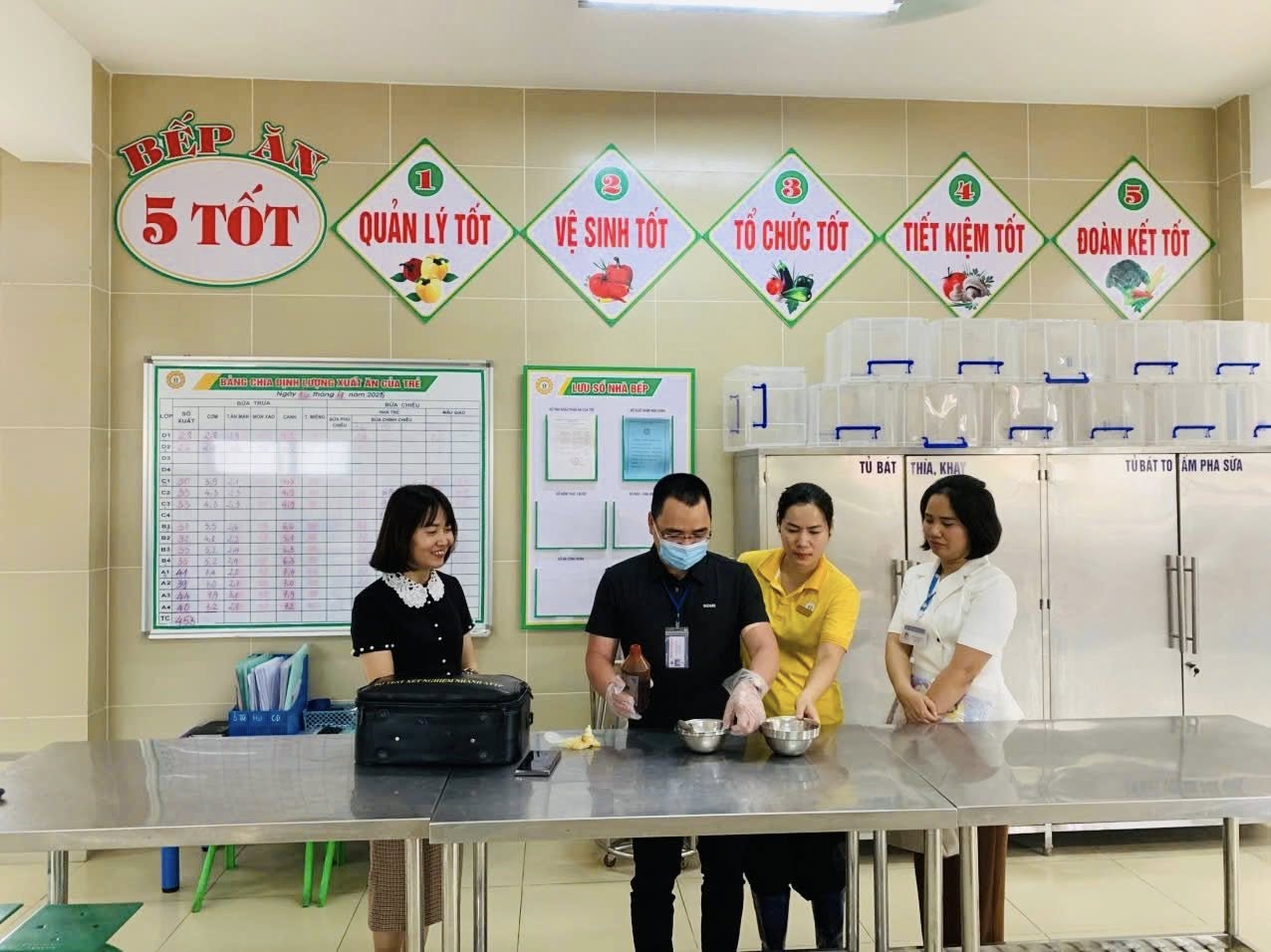 Tại buổi làm việc, đoàn đã tiến hành kiểm tra các nội dung liên quan đến công tác chăm sóc sức khỏe học sinh, đảm bảo vệ sinh trường lớp, phòng chống dịch bệnh, công tác y tế học đường và đặc biệt là công tác đảm bảo vệ sinh an toàn thực phẩm trong nhà trường. Qua kiểm tra, đoàn đã ghi nhận những nỗ lực và kết quả tích cực mà nhà trường đã đạt được trong việc thực hiện các quy định về y tế trường học, đảm bảo môi trường học tập an toàn, lành mạnh cho trẻ.