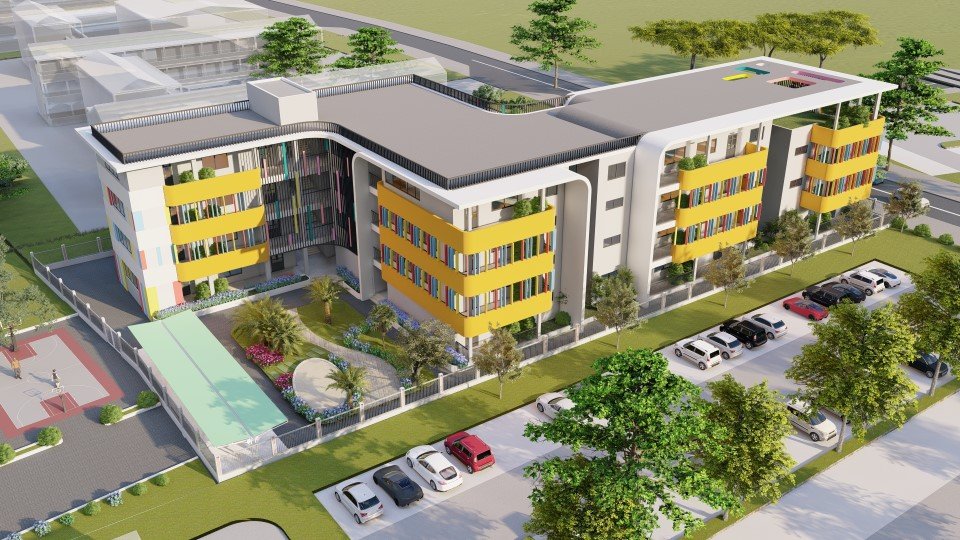 Tầng 4: Gồm hội trường, 1 phòng thư viện, phòng đa năng và tin học cho giáo viên, khu bếp, kho.