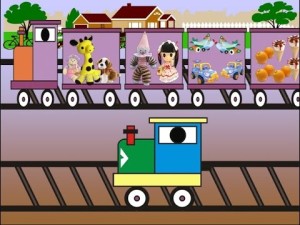 Một chiếc đầu máy xe lửa đang chạy trên đường ray, kéo theo bốn toa tàu chất đầy những món quà năm mới dành cho các em nhỏ. Toa tàu thứ nhất chở thú nhồi bông: Những chú hươu cao cổ, những chú gấu mập tròn… Toa tàu thứ hai chất đầy búp bê, trong đó có một búp bê lớn và một chú hề vui tính. Toa tàu thứ ba chở các đồ chơi như xe ô tô, máy bay… Còn toa tàu thứ tư chứa đầy các món ăn hấp dẫn: Nào là những quả táo đỏ tươi, những quả cam vàng ửng, sữa tươi, kem và đủ loại bánh kẹo.