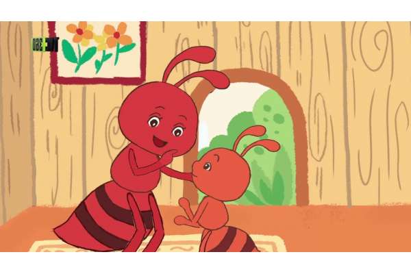 -“Bác gấu ơi!cháu ở đây!”. Bên tai bác gấu vang lên tiếng của Kiến. Ủa, té ra Kiến con đã leo lên vai bác gấu ngồi chễm chệ trên đó.