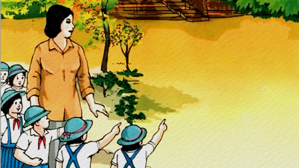 Vào một buổi sáng nắng đẹp, cô giáo Mỹ dẫn các cháu mẫu giáo đi chơi vườn Bách thảo.