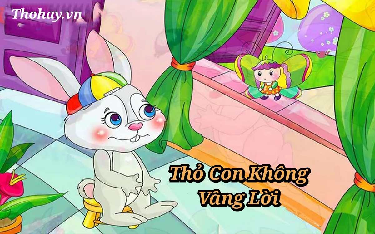 Thỏ mẹ vừa đi khỏi cổng thì bạn bươm bướm bay đến. Bươm bướm gọi: